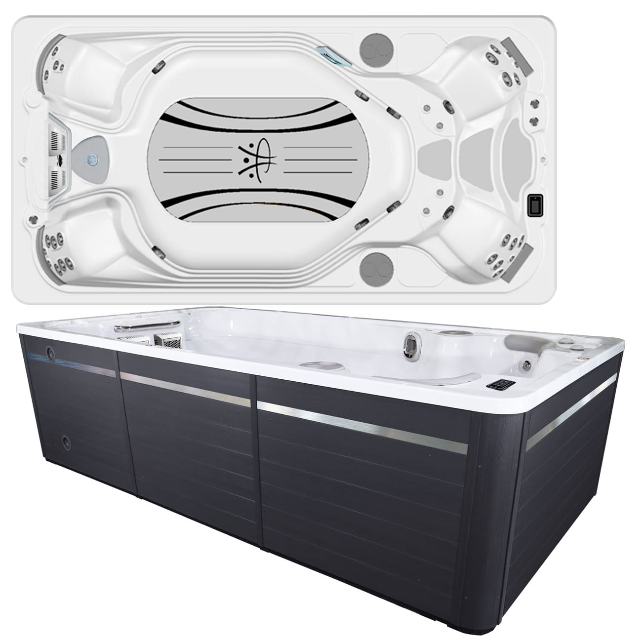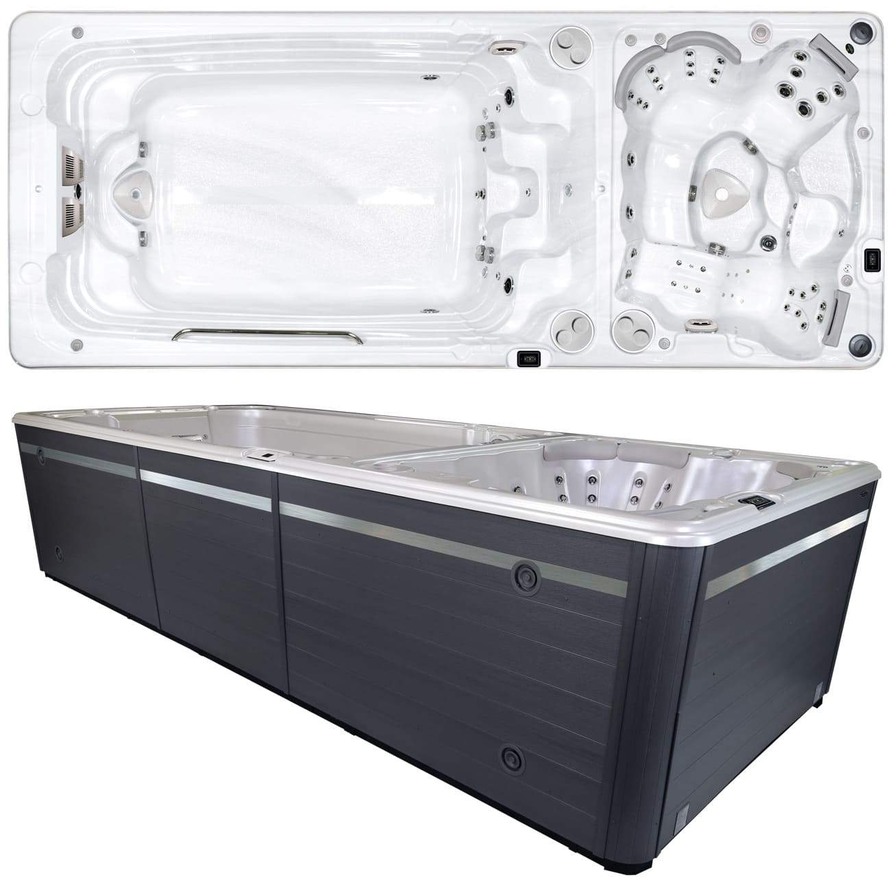 Плавательный спа бассейн с противотоком — относительно новое оборудование, предназначенное одновременно для плавания и гидромассажа. Такой бассейн имеет одну или две чаши, изготовленные из стекловолокна. Внутреннюю поверхность покрывают слоем акрила.